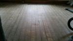 Under many layers of newer flooring we found the original pine floorboards, mostly in pretty good shape, but a lot of old paint, some sort of wash in other